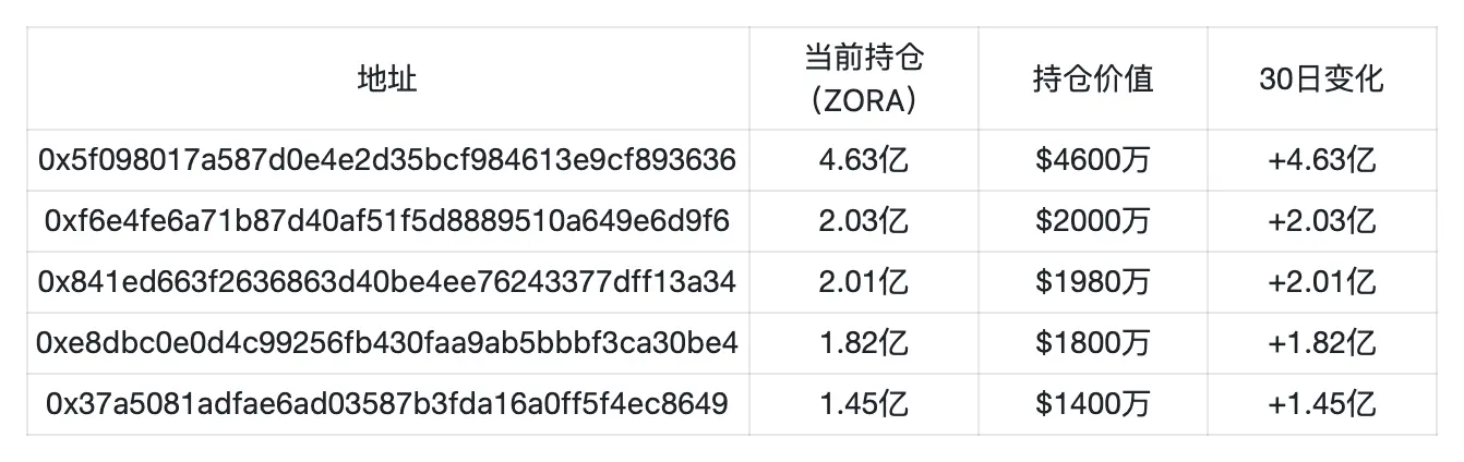 另一方面,9-10 月期间$Zora 的持仓结构也发生了明显变化,根据链上数据显示,过去 30 天内有大量巨鲸入场建仓或增持$Zora,尤其是在 9 月市场整体下跌期间,大户依然保持逆势买入。而这样的持仓结构变化似乎也意味着 Zora 的长期价值正在得到机构级别的认可。